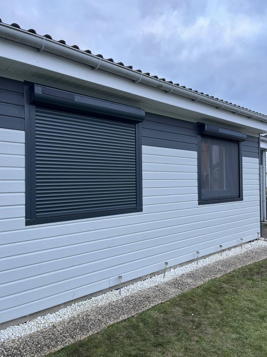 Ce projet met en valeur l’installation de fenêtres aluminium, de volets roulants solaires et d’une porte d’entrée alu à Louviers, avec un choix de coloris gris anthracite 7016 à l’extérieur et blanc à l’intérieur. Un rendu moderne, élégant et durable. La personnalisation complète a permis de s’adapter aux dimensions réelles des ouvertures, différentes des standards du marché, garantissant confort et performance énergétique.