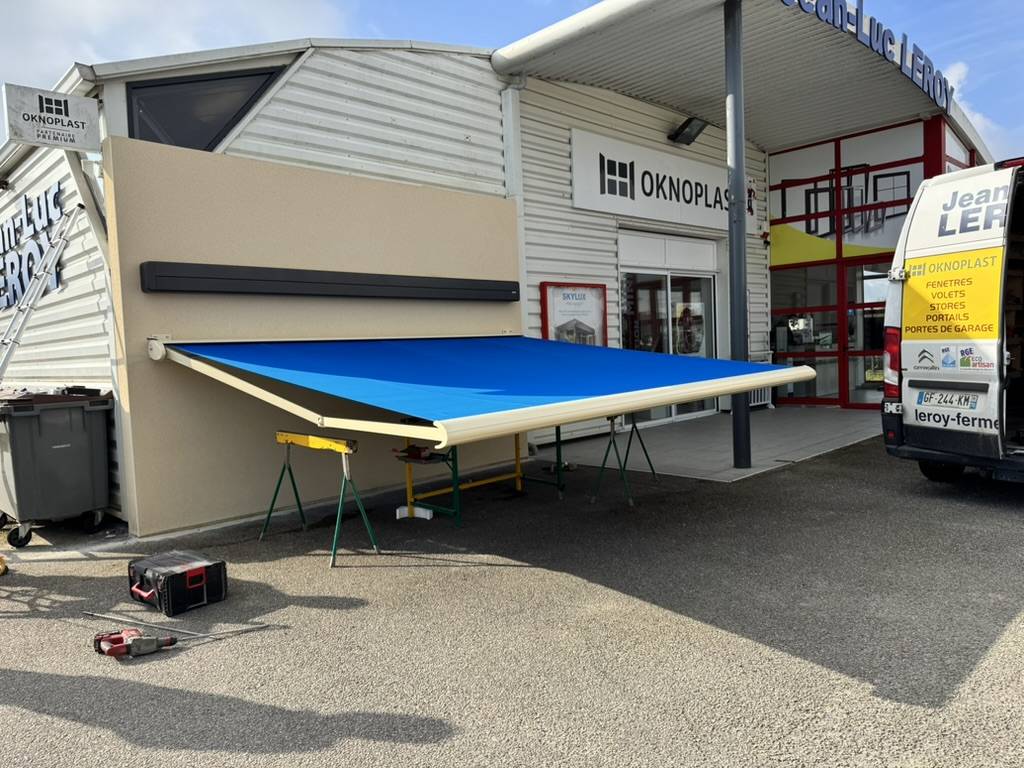 Découvrez l’installation de stores bannes WINSOL chez LEROY FERMETURES près du Neubourg. Exposition réelle, manipulation des produits, qualité premium, configurations sur mesure et conseils experts en Normandie.